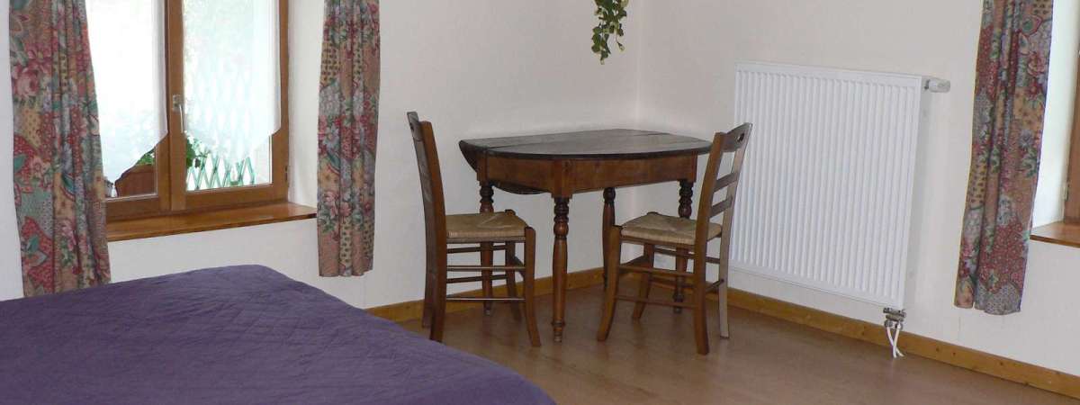 The "ferme du Nouveau Chemin": a peaceful place to stay in a sunny clearing at the foot of the Climont. 5 B&B rooms awarded 3 ears of corn nearby the pastures, at 500 meters of altitude. 2 rooms upstairs: Room 1 : double bed and baby cot, balcony. Room 2: 2 single beds. 3 rooms on the groundfloor of the owner's house (2 double rooms and a 4-beds room) . Separate bathroom and toilet. Lawn and outside lounge, swing, parking place.