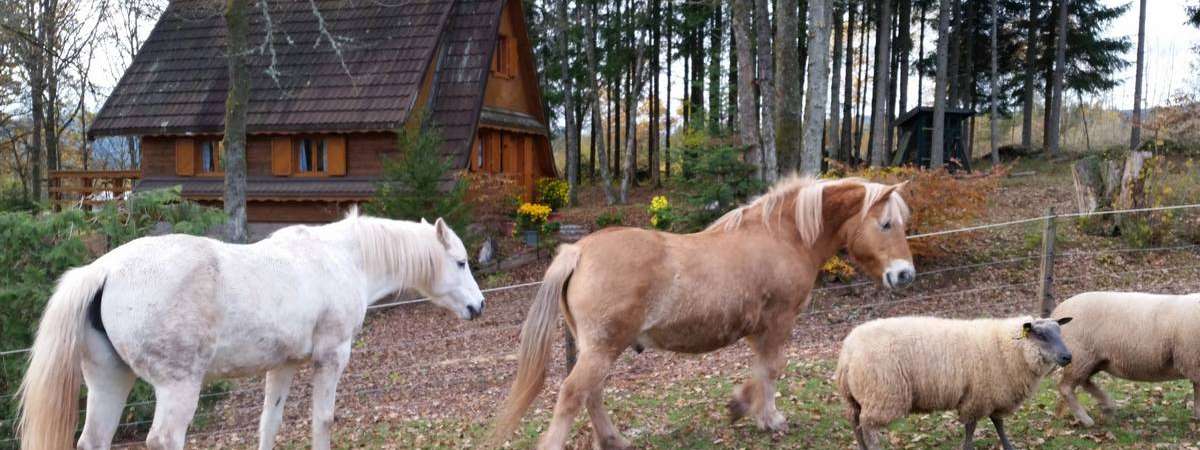 The entire cabin with its adjacent 5,000 square meters of woodland is at your disposal. The vegetable garden and the animal paddocks, located on 3 hectares in the direct vicinity of the accomodation, are also accessible if gates are kept closed and the animals are respected.
