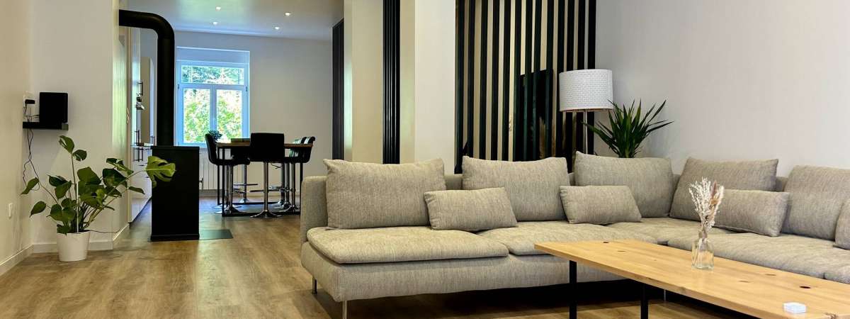 Charming 115 m² quadruplex in the heart of the Bruche valley. This modern and cozy apartment, with a 6 person jacuzzi and wood stove, is perfect for a stay with friends or family.
